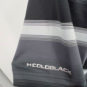 Stylish polo with black and gray stripes. Features a classic collar and button placket. Perfect for casual wear.