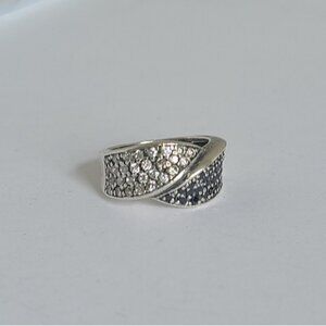Vintage Boho 2 Tone Clear Black Spinel Crystal Colourblock Sterling Silver Cocktail Ring