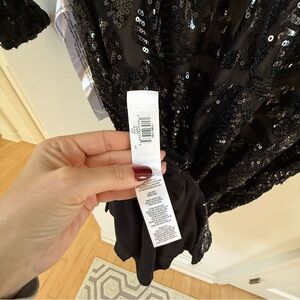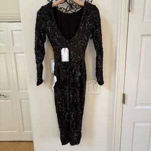 DRESS THE POPULATION Emery Sequin Midi Dress in Black XXS NWT
