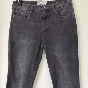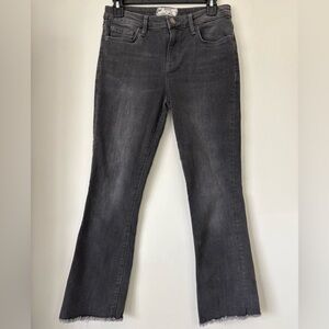 Free People Straight Leg Frayed Hem Cropped Jeans Washed Black 26” Inseam Sz 28