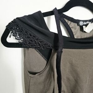 Plastik Wrap Goth Military Olive Green Minidress W/ Black Lace