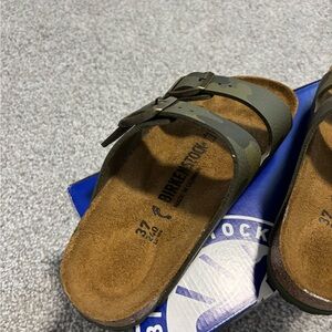 Camouflage Birkenstock sandals. Never worn and comes with the box. Size 37 or ladies size 6.