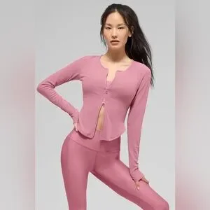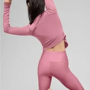 ALO Yoga Ribbed Stardust Long Sleeve in Pink Dusty Rose XXS