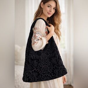 Johnny Was Mina Hobo Bag Floral Velvet Burnout Black Embroidered Boho