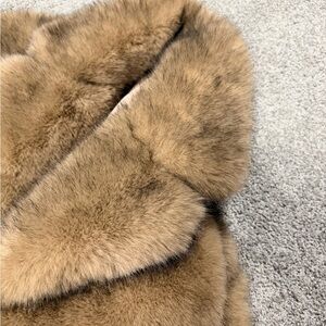 Elevate your style with this luxurious brown faux fur coat. Perfect for adding a touch of elegance to any outfit.
