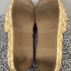 Step into comfort with these stylish tan woven raffia slide espadrille sandals by A New Day. Perfect for casual outings, summer, resortwear, vacation, beach, outdoor party. These sandals offer a chic and natural look. Great condition.