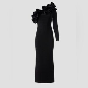Herve Leger Asymmetrical Ruffle Gown, L
