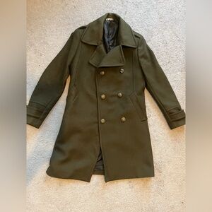 Zara Men's Double-Breasted Olive Green Pea Coat