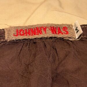 Boho Johnny Was brown tunic with floral embroidery. Features intricate design and elegant style.
