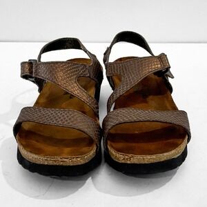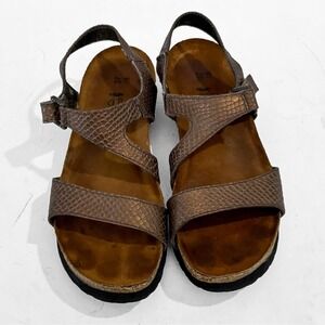 Naot Pamela Platform Sandals Womens 6 Bronze Metallic Snake Embossed Leather