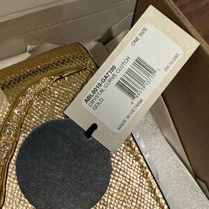 ✨ Gold sculptural clutch with crystal curve detail