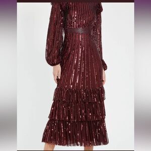 Dazzle in this stunning burgundy dress. Features shimmering sequins and elegant long sleeves. Perfect for special events.