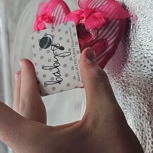 These are so precious and will look adorable on your little ones footsies. Pink and white stripes with bows. sz newborn to 6 mos
