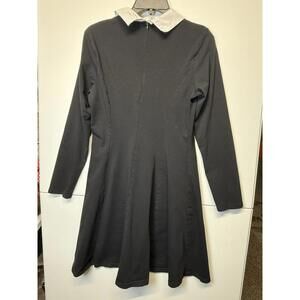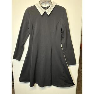 Wednesday Addams Dress by Aphratti Sz M Black Long Sleeve Mini Fit And Flare