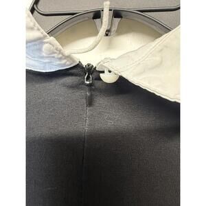 Note: Very small pink stain on collar and tab is torn on back collar