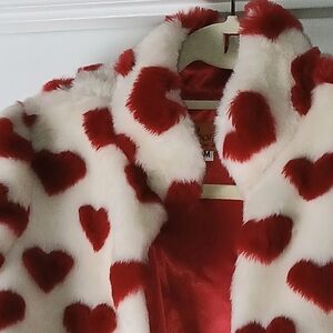 ❤️❤️Voom by Joy Han White faux Fur Cropped Teddy Jacket w Red Hearts Valentines