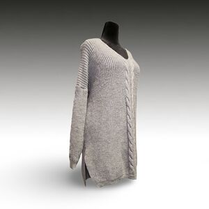 ❥Unbranded Oversized V-Neck Cable Knit Sweater/Dress in Light Gray