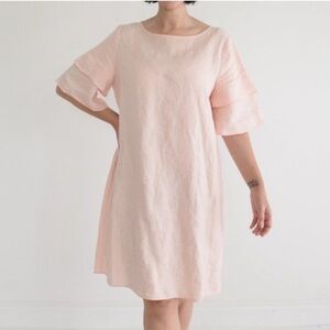 Lord & Taylor NWT 100% Linen Blush Pink Ruffle Summer Dress Size Medium