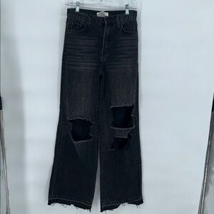Vibrant M.I.U. Jeans Women's Juniors Size 1 Black Distressed High Rise Wide Leg