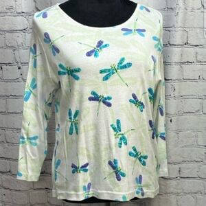 Lulu-B Dragonfly Print Long Sleeve Top - White and Blue