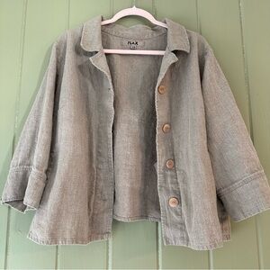 Flax Button Down Shirt Jacket Linen Size 1G 1X open jacket tan neutral