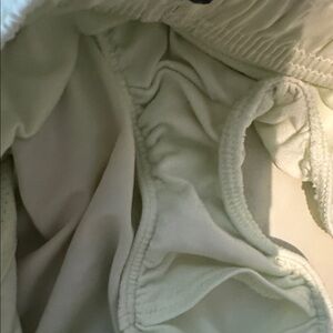 Elevate your workout with these mint green Nike shorts. Lightweight and breathable design. Ideal for running and training. Overall great condition but has some stains that are very small throughout and therefore selling low. I am bringing this from my storage so most likely these Minor small stains can be washed out. Also blacked out my initials on shorts. See pics.