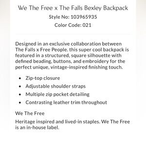 NWT We The Free x The Falls Bexley Backpack. Absolutely stunning details. Retails almost $500