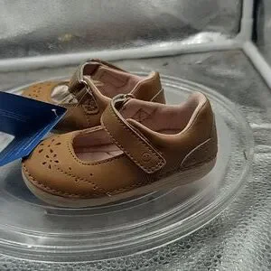 Stride rite brown and tan velcro strap to help the shoes stay on your Lil kiddos feet.