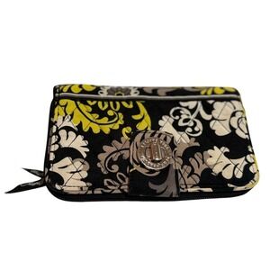 Vera Bradley turn‑lock wallet in the retired Baroque pattern. Released around 2010 and crafted in signature quilted cotton. Has a turn‑lock closure with engraved hardware plus a full zip‑around section for cards, cash, and coins.