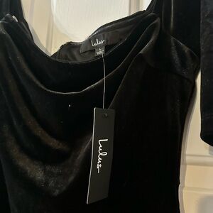 NWT LULU'S Girl Can't Help It Black Velvet Off Shoulder Dress Size L