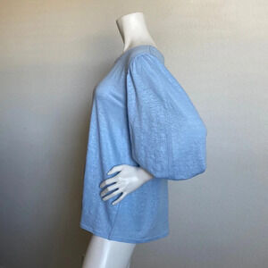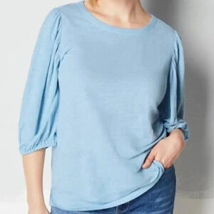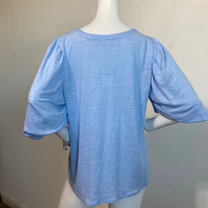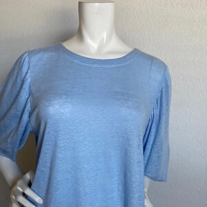 J.Jill NEW Puff Sleeve Top 100% Linen Flowy Elbow Sleeve Round Neck Size Large