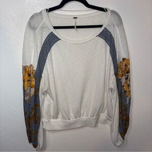Free People Casual Clash Waffle Knit Top Boho Patchwork Size S