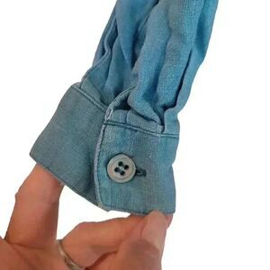 Neiman Marcus Women's Turquoise Linen Pleated Collared Button Down Shirt , Oversized EUC sz S