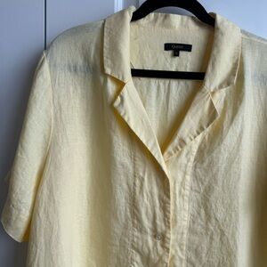 Elevate your wardrobe with this women's yellow button-up top. Perfect for casual outings or a day at the office, this top combines style and comfort effortlessly.
