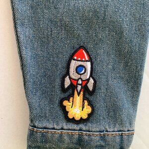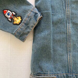 Vintage Y2K Space Denim Jacket UFO Alien Patches Pins 90s Grunge Sz XS/S