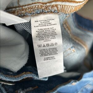 Item Description : Curvy Fit Tall rise, has a really cute paisley navy and white cuff hem at the bottom. Dark wash denim jeans with silver hardware.