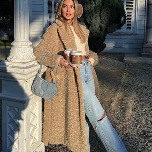 Cozy teddy coat with a belted waist. Features a soft, textured design. Perfect for layering.