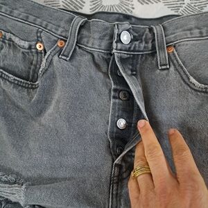 Levi's 501 Charcoal Gray Distressed Denim High Rise Button Front Shorties 29