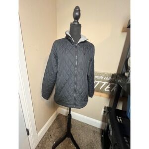 Columbia Quilted Jacket Full Zip Black Fleece Lined Collar Women L