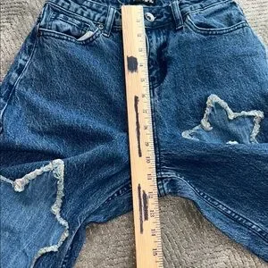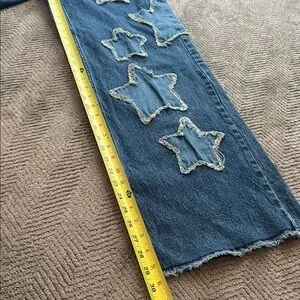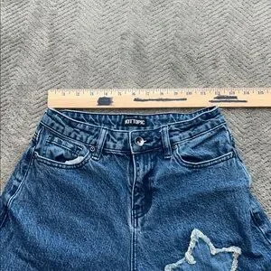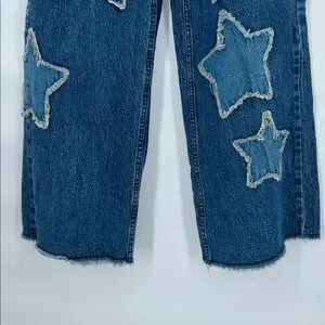 Hot Topic Women’s Blue Jeans Star Patch Wide Leg Jeans distressed Size 1