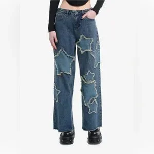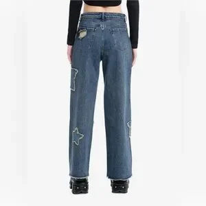 Chic straight leg jeans with bold star accents. Elevate your casual look.