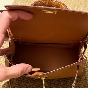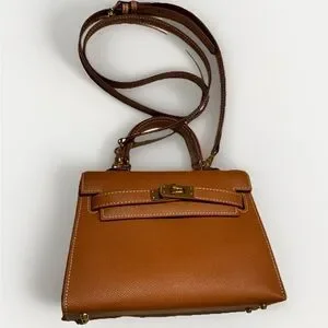 Caramel brown Leather Mini Kelly Style Handbag