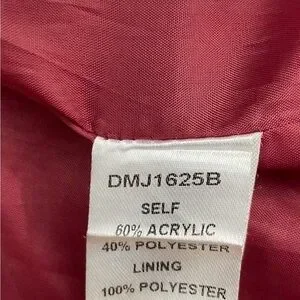Retro-style chevron pattern fastens with large hook-and-eye closures. Features a full interior lining. Chic chevron design with plush faux fur. Features a mix of black, white, and burgundy.