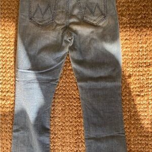 Perfectly washed-out and lived in vintage vibe straight leg jeans by MOTHER. Light blue wash with signature back pocket design. Ideal for casual wear.