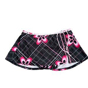 Vintage 90s Y2K women's Juniors M black pink floral bikini skirt swimsuit bottom