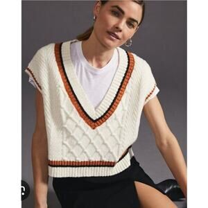 Anthropologie Maeve Willa Cable Knit Sweater Vest XS Cream Striped