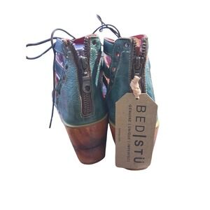 Bed Stu Shirin Green Leather Platform Womens size 9 Chunky Lace-up Zip Sandals