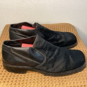 Bacco Mens Bucci Black Calf Hair Mens Sz 16 Loafers Shoes Made in Italy