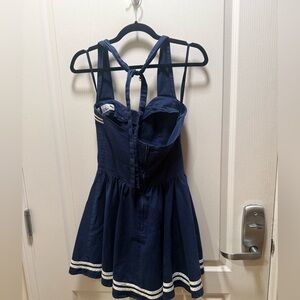Hell Bunny Navy Motley Sailor Dress Nautical Navy Halter Dress size S