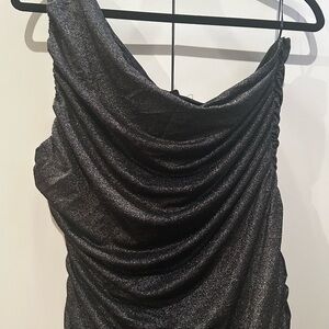 This elegant black draped dress is perfect for any special occasion. Its sophisticated design and classic color make it a versatile addition to your wardrobe.